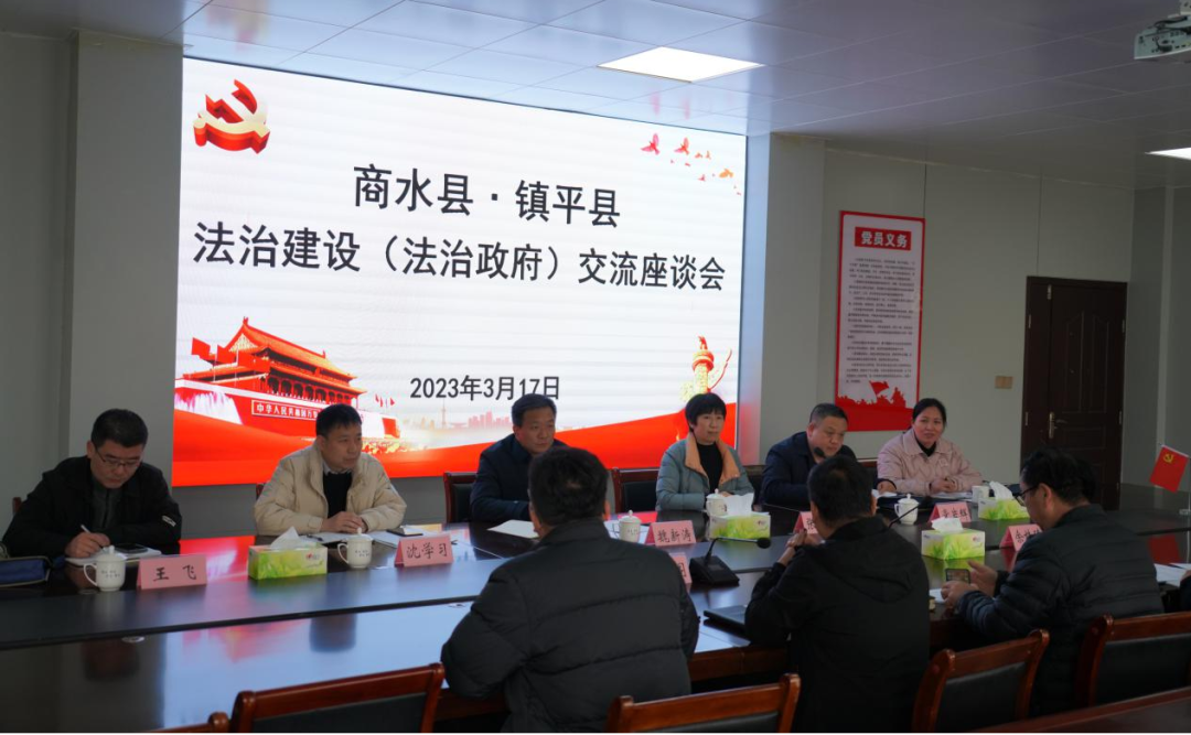 3月17日上午,商水县司法局党组成员、副局长魏新涛一行六人莅临镇平县交流学习法治政府建设有关工作经验。镇平县司法局党组成员、副局长崔朝印、依法治县秘书股、法治综合股相关工作人员陪同。