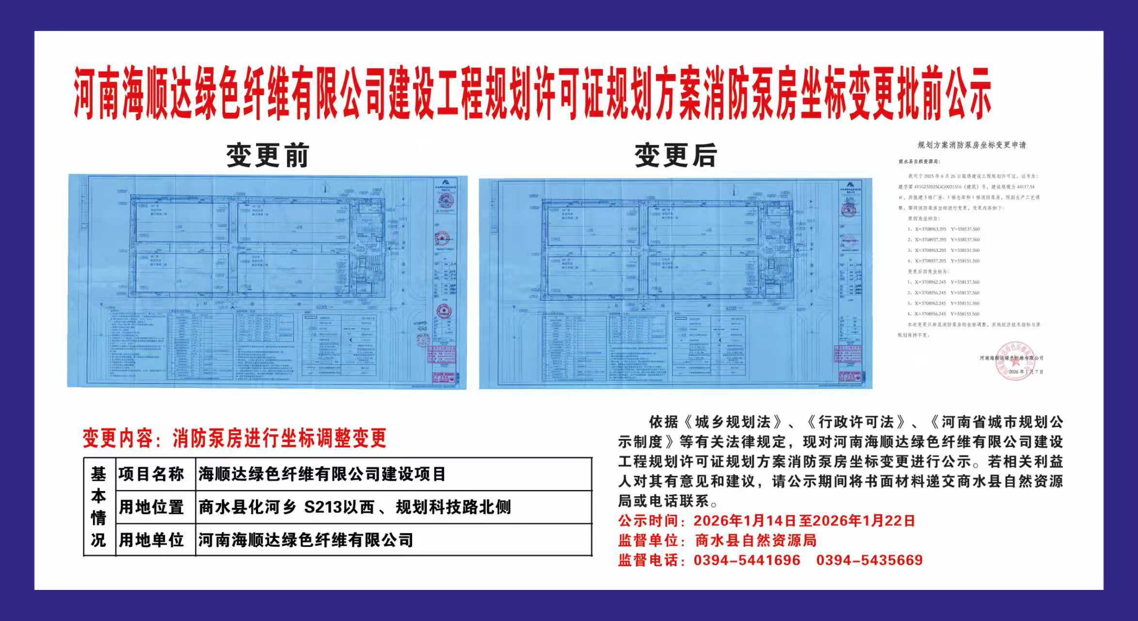 规划方案消防泵房坐标变更批前公示