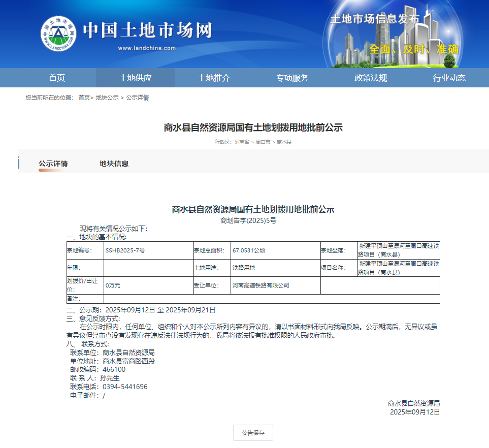 【国有土地划拨信息】商划告字(2025)5号