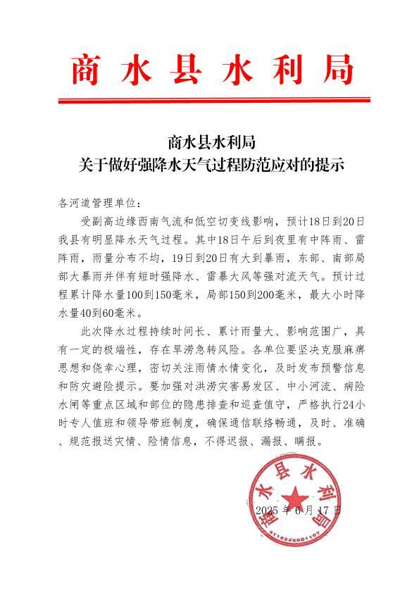 商水县水利局关于做好强降水天气过程防范应对的提示