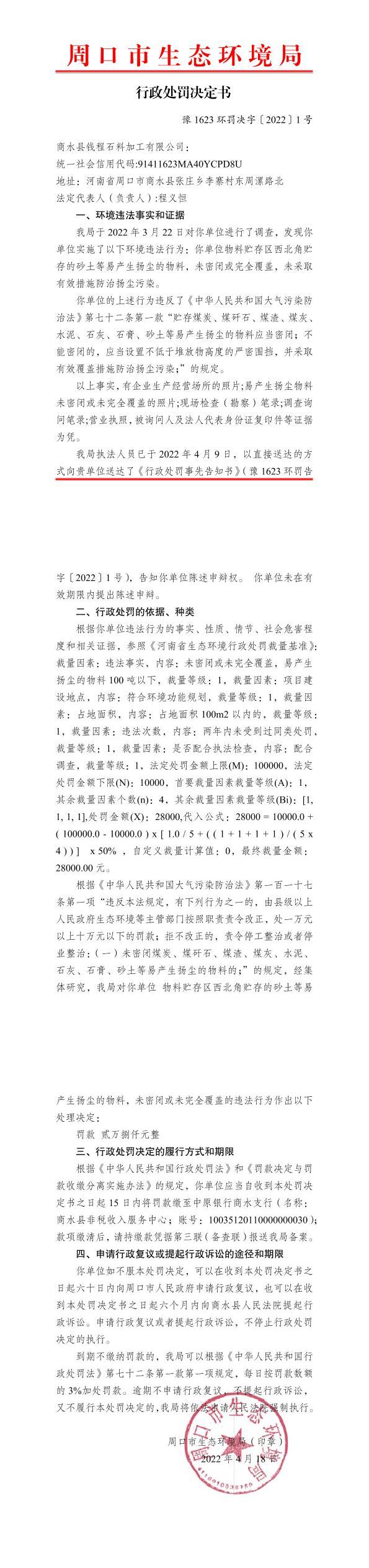 豫1623环罚决字〔2022〕1号